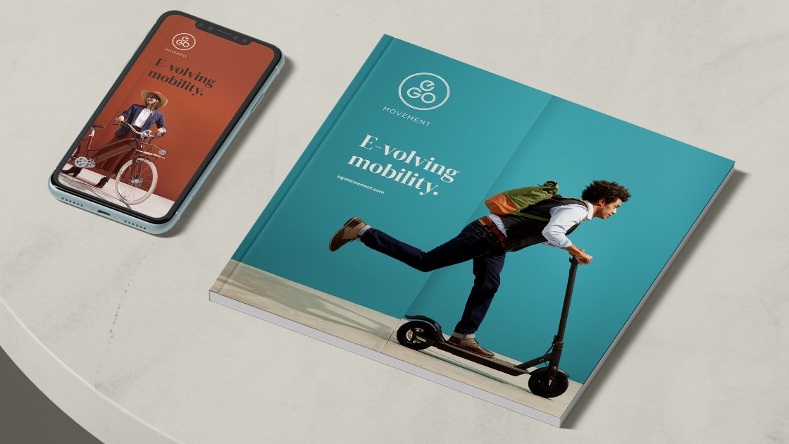Ego movement stands for sustainable micro-mobility solutions. The products are stylish, practical, easy to use and stand for unlimited mobility. All these aspects are reflected in the new corporate design. Earthy colors, elegant shapes and serif typeface represent uncomplicated high quality. They underline the high standards and the individuality of the brand.